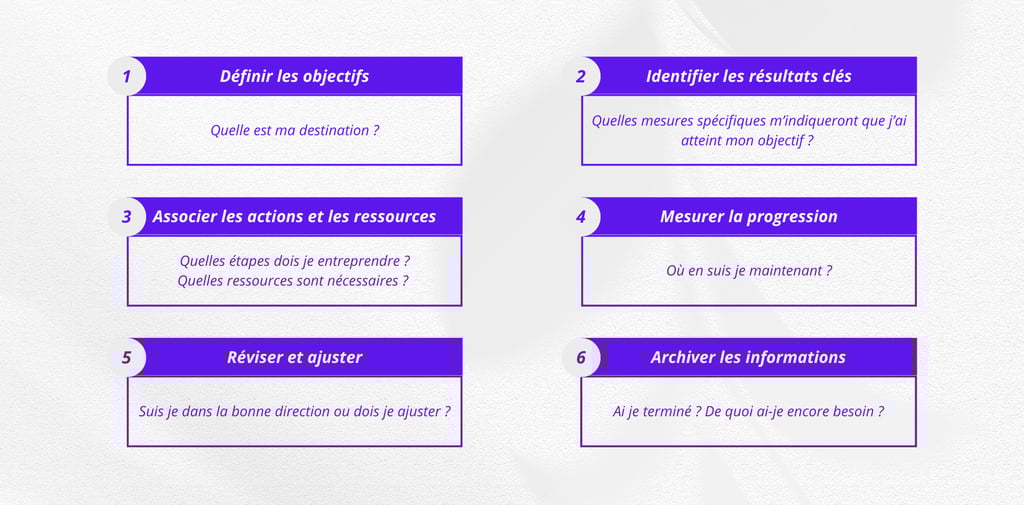 En utilisant les OKR, tu ne te perds pas dans la forêt des tâches quotidiennes. Tu gardes le cap vers tes sommets, avec des panneaux indicateurs pour t’aider. Et si tu rencontres un dragon en chemin, tu peux ajuster ta trajectoire.